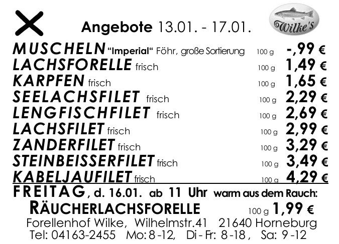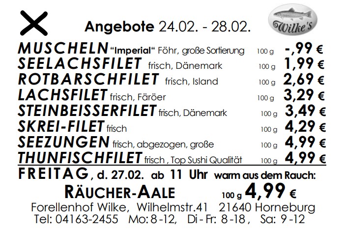 Frischer Fisch - geräucherte Fischspezialitäten - Salate