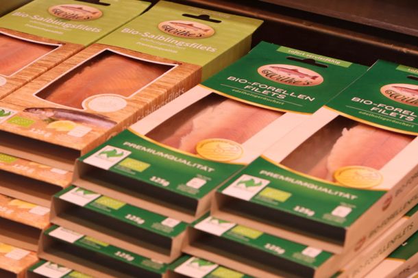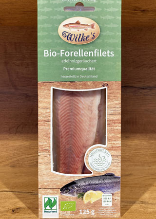 In unserer Räucherei werden die Bio-Forellen lebendfrisch verarbeitet. Für unsere Bio-Forellenfilets lehnen wir den Einsatz von Frostware ab. Unsere Bio-Räucherforellenflets werden per Hand filetiert und anschließend unter Schutzatmosphäre verpackt.